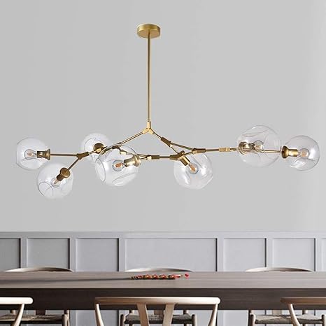 Luolax Modern Pendant Light Glass Chandelier With 7 Lights Fixture Hanging Flush Mount 7 Heads Gold Clear