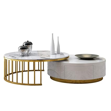 Amazon Com Round Coffee Table Set Marble And Wood Tabletop